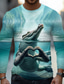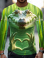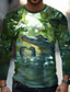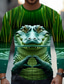 Men's Crocodile 3D T Shirt Long Sleeve T shirt 3D Print Crew Neck Shirt Fashion Basic Street Casual Daily Green 1# Green 2# Green 3# Summer Spring Clothing Apparel S M L XL XXL XXXL