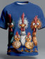 Men's Cat 3D Funny T Shirt Short Sleeve T shirt 3D Print Crew Neck Shirt Exaggerated Designer Party Holiday Blue Black 1 Black Summer Spring Clothing Apparel S M L XL XXL XXXL
