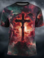 Men's Bible Jesus Crucifixion Angels Heaven Fire Light Religious All Over Print T Shirt Short Sleeve Crew Neck Church Worship Good Friday Tee Designer Clothing Apparel