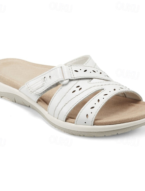 Women's White Slide Sandals with Adjustable Strap and Comfortable Sole for Summer Wear