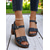 Women's Chunky Heel Floral Sandals – Brown Faux Leather Summer Shoes with Ankle Strap & 3D Flower Design for Garden Walks and Outdoor Gatherings