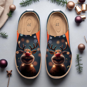 Women's Wide Toe Reindeer Canvas Travel Shoes – Cute Christmas Walking Shoes, Perfect for Holiday Travel and Winter Streetwear