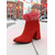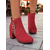 Women's Red Suede Ankle Boots with Rhinestone Embellishments and Block Heels – Festive Christmas Footwear for Parties and Holidays