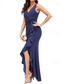 Women's Maxi Dress A Line Dress Elegant Evening Party Cocktail Party Ruched Lace Regular Fit Solid Color Sleeveless Crew Neck Navy Blue