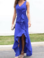 Royal Blue Chiffon Pleated Wedding Guest/Party A Line V Neck Short Sleeve Maxi Dress dress to impress 2024