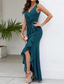 Women's Maxi Dress Chiffon Dress Wrap Dress Pleated Dress Glitter Asymmetric Elegant Formal Cocktail Wedding Guest Evening Party Cocktail Party Metallic Sleeveless V Neck Rose Gold Summer