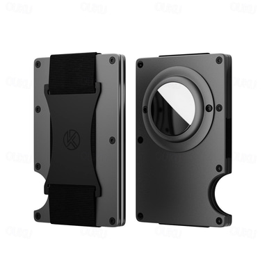 For AirTag Wallet for Men Minimalist Slim RFID Blocking Air Tag Holder Front Pocket Metal Wallet Card Holder with Cash Strap