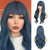 Blue Wig Long Blue Wig with Bangs Long Wigs for Women Long Wavy Synthetic Heat Resistant Fiber Wigs for Party Carnival Daily Use