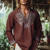 Men's Linen Shirt Summer Shirt Vintage Shirt Ethnic Shirt Long Sleeve Shirt Boho Vacation Street Orange Long Sleeve V Neck Summer Spring Clothing Apparel Ethnic
