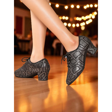 Women's Mesh Lace-Up Ballroom Dance Shoes with Low Heel, Breathable Professional Practice Footwear for Latin and Waltz Performance