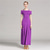 Women's Purple Ombre Ballroom Dance Dress with Flowing Sleeves, Belted Waist, and Halter Neck – Perfect for Latin, Tango, and Performance Wear
