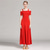 Red Ballroom Dance Dress with Off-Shoulder Sleeves, Elegant Flowing Skirt for Latin & Social Dancing