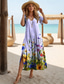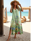 Women's Maxi Dress Casual Dress A Line Dress Stylish Casual Vacation Daily Regular Fit Floral Short Sleeve V Neck White Light Green Blue Green Summer Spring