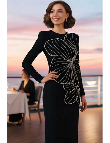 Sheath Column Floor Length Formal Dresses Evening Gown Evening Gown Elegant Vintage Long Sleeve Crew Neck Evening Party Halloween with Beading
