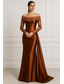 A-Line Sweep Brush Train Wedding Guest Dress Formal Dresses Evening Gown Prom Dresses Elegant Sleeveless Off Shoulder Prom Formal Satin with Color Block