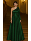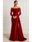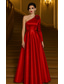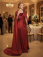 Red A-Line Evening Gown Stretch Satin Elegant Formal Dress Formal Wedding Floor Length Long Sleeve One Shoulder with Shouder Flower
