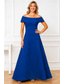 A-Line Floor Length Evening Gown Ball Gown Elegant Short Sleeve Off Shoulder Wedding Formal Pocket Satin Nylon with Pocket