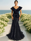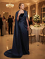 Sheath Column Floor Length Beaded Eembroidered Formal Dresses Mother of the Bride Dress Evening Gown Ball Gown Formal Dress Elegant Black Dress Silky Sleeveless One Shoulder Wedding Formal Capes Lace