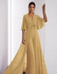 A-Line Floor Length Beaded Eembroidered Formal Dresses Mother of the Bride Dress Evening Gown Formal Dress Elegant Sparkle High Split 3/4 Length Sleeve Crew Neck Wedding Formal Capes Satin Lace with