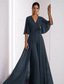 Sheath Column Floor Length Beaded Eembroidered Formal Dresses Mother of the Bride Dress Prom Dresses Evening Gown Ball Gown Formal Dress Elegant Glittering Silky Long Sleeve V Neck Wedding Formal