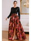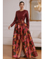 Mermaid Trumpet Floor Length Evening Gown Formal Dress Elegant Celebrity Style Long Sleeve Boat Neck Garden Party Wedding with Floral Print Ruched Slit