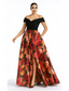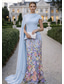 A-Line Sheath Column Floor Length Ball Gown with Cape Evening Gown Ball Gown Formal Dress Elegant Vintage Floral Short Sleeve Crew Neck Wedding Formal Stretch Fabric Cowl Back with Floral Print