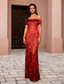 Sequin Ruffles Sheath / Column Evening Gown Elegant Formal Dress Formal Wedding Floor Length Long Sleeve One Shoulder Sequined with Pleats Slit