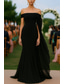 Sheath / Column Evening Sweep Brush Train Ball Gown with Cape Evening Gown Elegant Vintage Red carpet Sleeveless Off Shoulder Formal Black Tie Gala Satin Velvet with Bow(s)