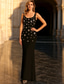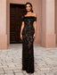 Sheath Column Floor Length Evening Gown Ball Gown with Overskirt Formal Dress Elegant Glittering Black Dress Sleeveless Off Shoulder Wedding Formal Capes Taffeta Sequined with Glitter Beading