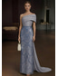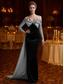 Mermaid Trumpet Sweep Brush Train Floor Length Prom Dresses Evening Gown Ball Gown Formal Dress Elegant Glittering Celebrity Style Long Sleeve One Shoulder Garden Party Wedding Sequined Velvet with