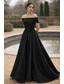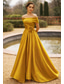 A-Line Floor Length Evening Gown Ball Gown Formal Dress Elegant Glittering Silky Short Sleeve Off Shoulder Wedding Formal Pocket Taffeta with Pocket