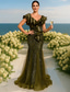 Mermaid Trumpet Floor Length Prom Dresses Evening Gown Ball Gown Formal Dress Sparkle & Shine Sexy Long Sleeve V Neck Formal Wedding Guest Fall Wedding Reception Sequined with Bow(s) Sequin