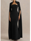 A-Line Floor Length Beaded Eembroidered Formal Dresses Mother of the Bride Dress Evening Gown Ball Gown Formal Dress Elegant Glittering Black Dress Short Sleeve One Shoulder Wedding Formal Capes