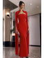 Jumpsuits Floor Length Evening Gown Ball Gown with Overskirt Formal Dress Elegant Infinity Sleeveless One Shoulder Formal Wedding Guest Convertible Stretch Fabric with Bow(s) Pleats Overskirt