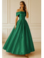 A-Line Floor Length Evening Gown Ball Gown Formal Dress Elegant Color Block Silky Long Sleeve Off Shoulder Wedding Formal Pocket Satin with Pleats Pocket Shouder Flower