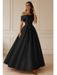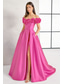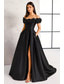A-Line Floor Length Evening Gown Elegant High Split Sleeveless Off Shoulder Formal Wedding Guest Satin with Pleats Slit