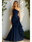 Mermaid Trumpet Sweep Brush Train Prom Dresses Evening Gown Ball Gown Formal Dress Elegant Glittering Celebrity Style Sleeveless One Shoulder Garden Party Wedding Satin with Ruched Ruffles