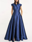 A-Line Floor Length Evening Gown Ball Gown Formal Dress Elegant Short Sleeve Queen Anne Wedding Formal Pocket Satin with Pocket