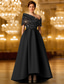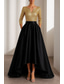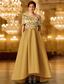 A-Line Asymmetrical Evening Gown Ball Gown Formal Dress Elegant Color Block Glittering Half Sleeve V Neck Wedding Formal Satin Lace with Glitter