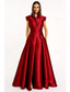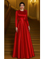 Red A-Line Evening Gown Elegant Formal Dress Formal Wedding Floor Length Long Sleeve Crew Neck Stretch Satin with Shouder Flower