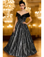 A-Line Floor Length Evening Gown Ball Gown Formal Dress Elegant Long Sleeve Crew Neck Wedding Formal Pocket Sequined Velvet with Crystals Beading