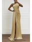 Sheath Column Floor Length Evening Gown Elegant High Split Sleeveless One Shoulder Wedding Formal Jersey Lurex Fabric with Glitter Slit