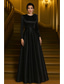 A-Line Floor Length Ball Gown with Cape Evening Gown Formal Dress Elegant Glittering Silky Long Sleeve Crew Neck Wedding Formal Pocket Lace with Pearls