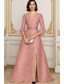 A-Line Floor Length Evening Gown Ball Gown Formal Dress Elegant High Split 3/4 Length Sleeve Shirt Collar Formal Pocket Satin with Appliques