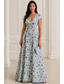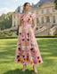 A-Line Floor Length Wedding Guest Dress Formal Dresses Evening Gown Prom Dresses Elegant Short Sleeve V Neck Formal Wedding Guest Chiffon with Floral Print