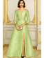 A-Line Floor Length Prom Dresses Evening Gown Ball Gown Formal Dress Celebrity Style Emerald Green Sexy Short Sleeve V Neck Prom Fall Wedding Guest Satin with Slit