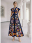 A-Line Floor Length Evening Gown Ball Gown Formal Dress Celebrity Style Short Sleeve Shirt Collar Garden Party Formal Belt / Sash with Floral Print