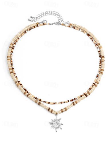 Men's Tribal Beaded Sun Pendant Necklace – Retro Bohemian Layered Jewelry with Adjustable Length for Beach, Festival and Casual Summer Outfits