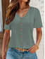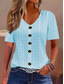 Women's Pointelle Shirt Eyelet Top Buttons Daily Short Sleeve V Neck Regular Tops Casual Daily Beach Sage Green Black White Pink Sky Blue Summer