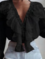 Women's Shirt Blouse Ruffle Buttons Solid Color Business Modern Casual Long Sleeve Shirt Collar Regular Tops Work Formal Wear Black White Summer Spring